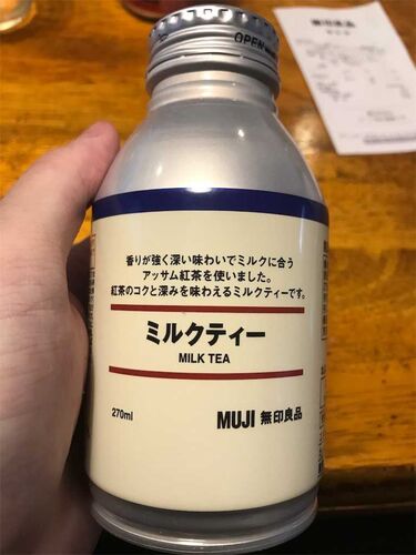 へいす。 今日のは無印良品のボトル缶。 ミルクティーです! 茶葉はアッサムだってさ! どうなんだろ…今まで無印でそんなにおいしいミルクティーを飲んだ記憶はないけど… ごくり… うん。 甘め。 ロイヤルではない、さっぱりゴクゴク飲めるミルクティーやね。…