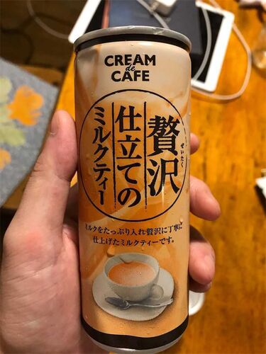 へいす! 連続更新3日目!! 12時になったらココ更新しようと思ってたんだけど、疲れてたから12時前に寝ちゃった。 ごめんね。 だから朝の更新だよ! 今日のはね、出先の自販機で見つけたミルクティー。 100円自販機だったんだけど、見たことないミルクティ…