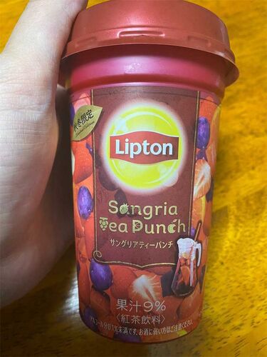 へいす! 今日のはリプトンのチルドカップだよ! コンビニで見つけました。 早めに飲んだと思うけど 更新が遅れちゃった。 「サングリアティーパンチ」です。 夏にもティーパンチ出てたよね。 コレは秋冬限定だってさ。 果汁は9%で、 りんご、いちご、ぶどう…