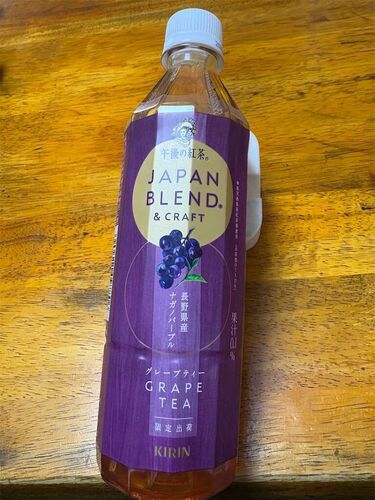 へいす。 今日のは午後ティーの新作。 「午後の紅茶・JAPAN BLEND &CRAFT・グレープティー」です。 スーパーで税抜き108円でした。 内容量は500mlで、果汁は0.1%です。 長野県産のナガノパープル使用だってさ。 ぶどう感に期待して、ごくり。 わりと甘さ控え…